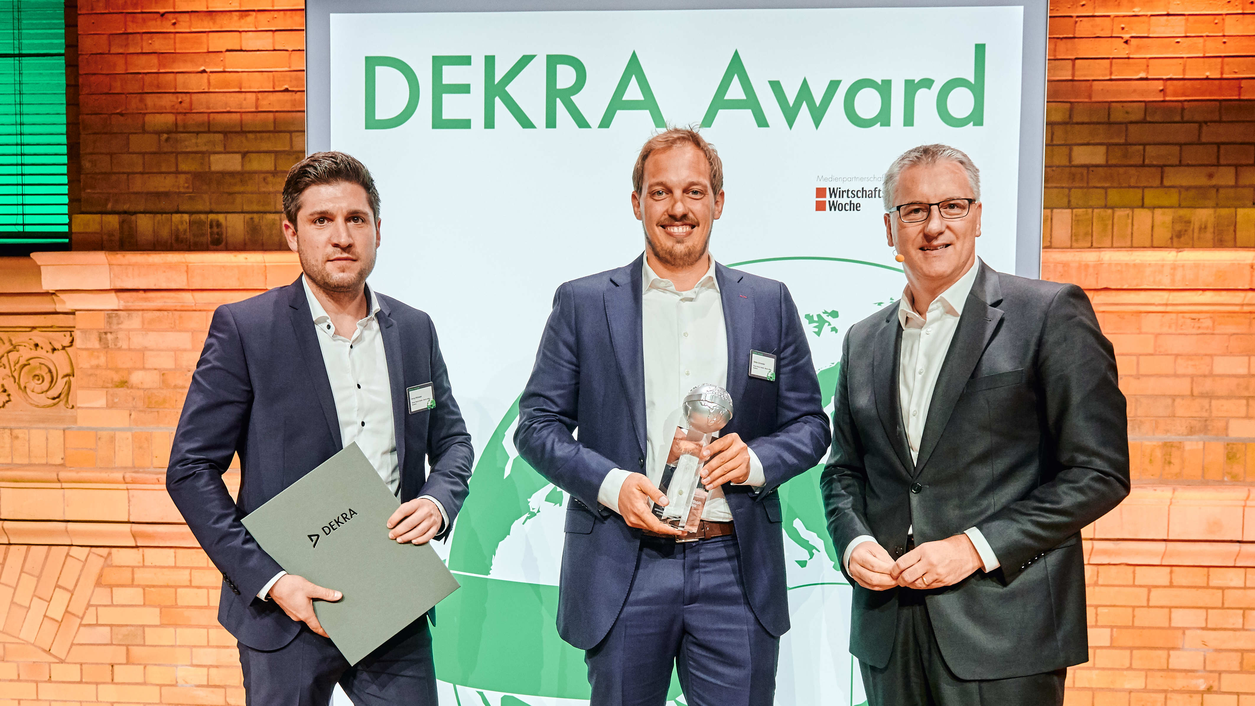 Stefan Kölbl, Chairman of the Board of Management of DEKRA e.V. and DEKRA SE (right), hands over the DEKRA Award to Bosch eBike Systems. Photo credits: DEKRA e.V.
