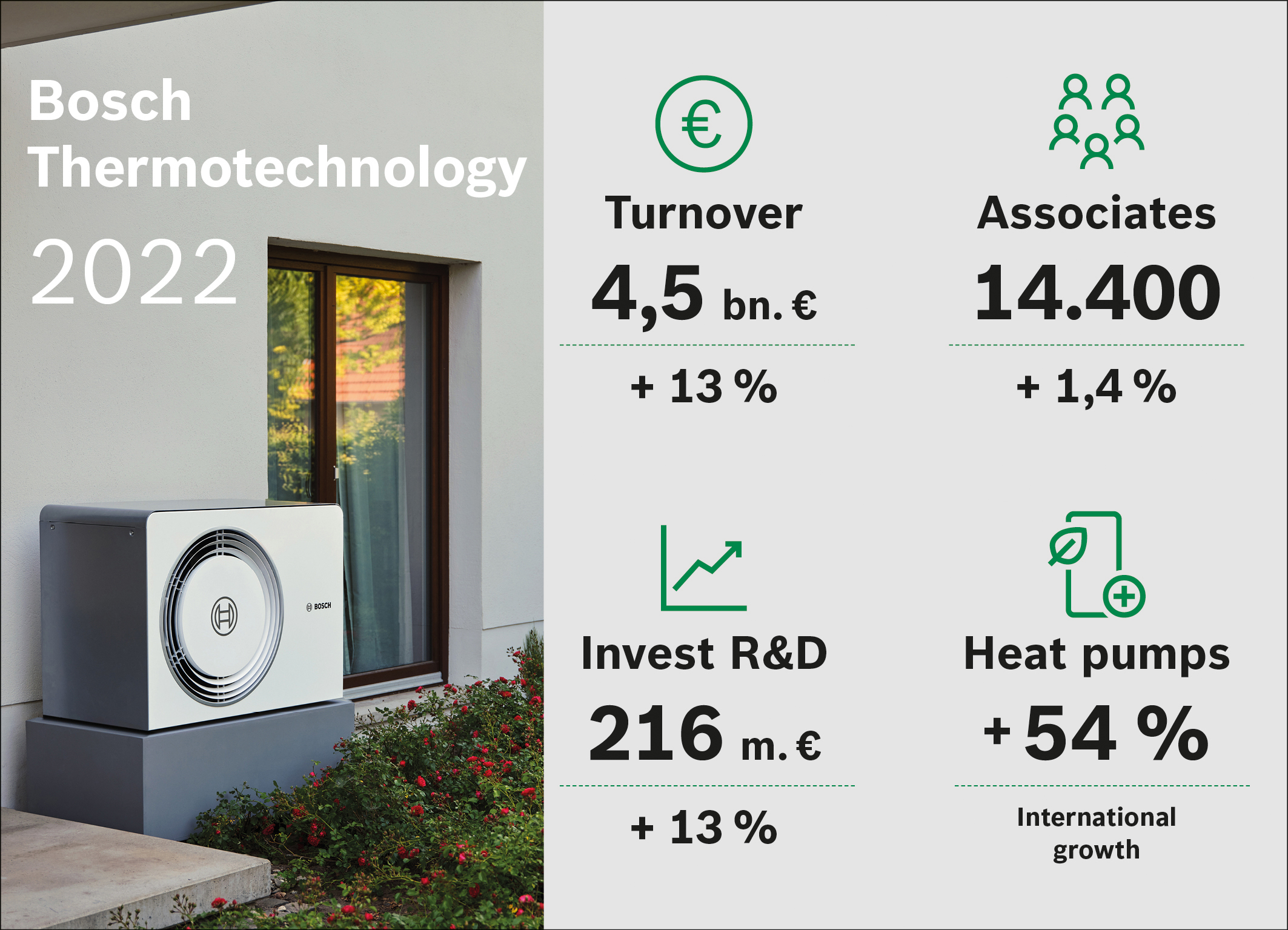 Bosch Thermotechnology posts record sales revenues of 4.5 billion euros for 2022.