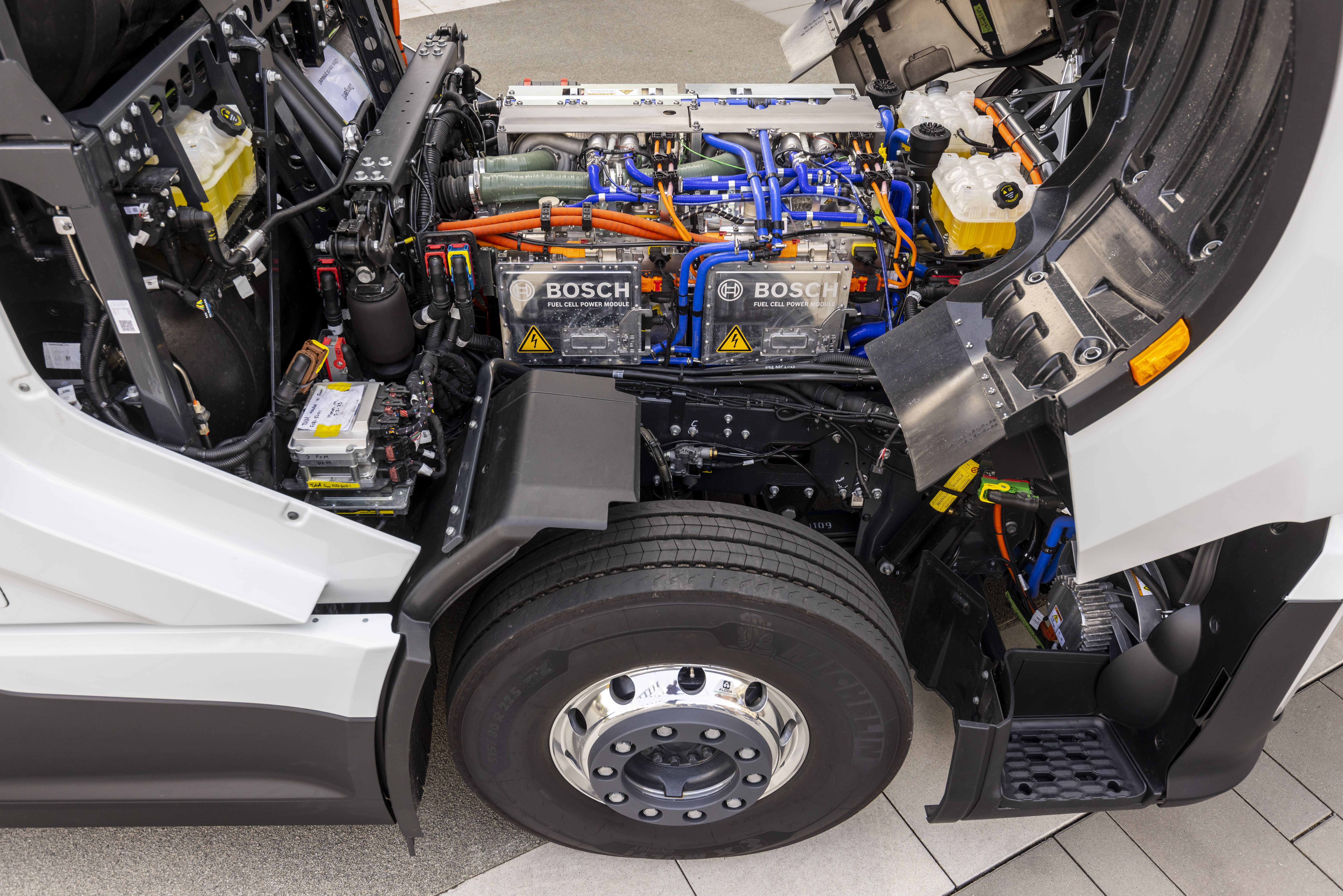 The IVECO Heavy Duty FCEV (fuel cell-electric vehicle) is a hydrogen-powered semi for the European market. With its fuel cell-electric powertrain, and in combination with green hydrogen, the semi emits zero emissions locally.