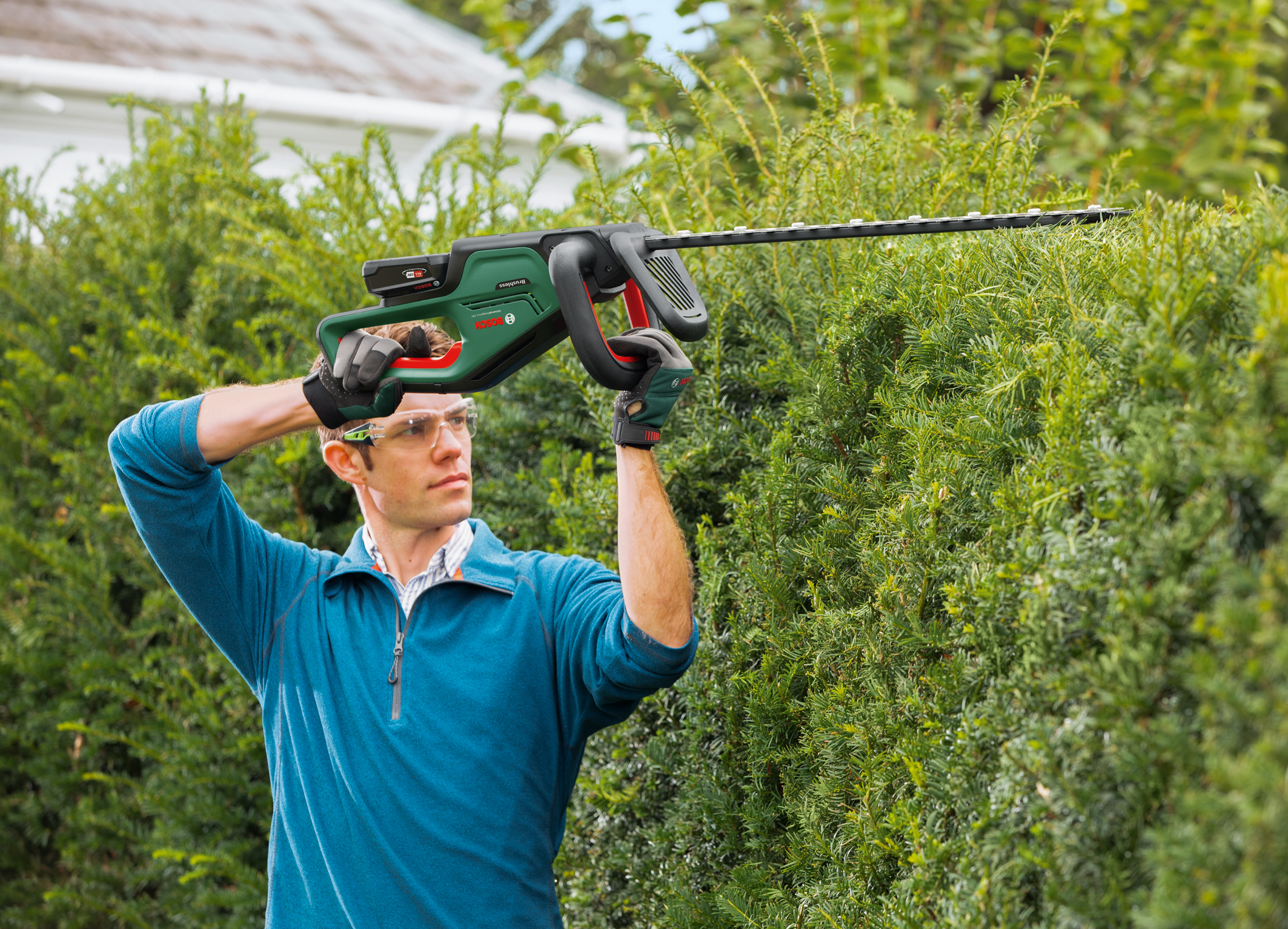 The UniversalHedgeCut 18V-50 und -55 ensure fast work progress with 2,800 strokes per minute. The tools are easy to work with due to their ergonomic design and low weight: The user can comfortably hold the multi-position handle which requires less force thanks to the improved trigger. This enables users to trim and shape conifer, privet, and laurel hedges comfortably and effortlessly. In addition, almost all tasks can be completed with just one battery charge thanks to the powerful 2.5 Ah battery with a runtime of up to 55 minutes.