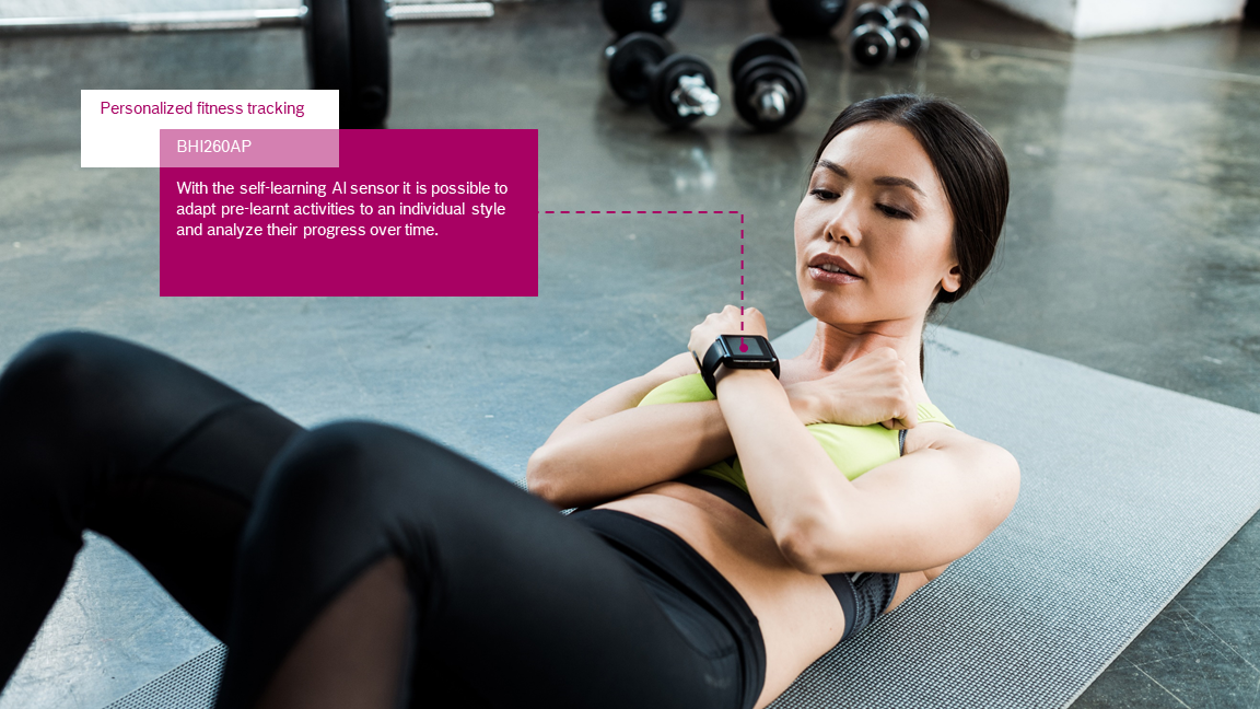 Bosch Sensortec’s new self-learning AI sensor, the BHI260AP, recognizes and adapts to a wide variety of movements and is able to learn any new fitness activity that is based on repetitive, cyclical patterns. Users can hence be trainers and trainees at the same time.
