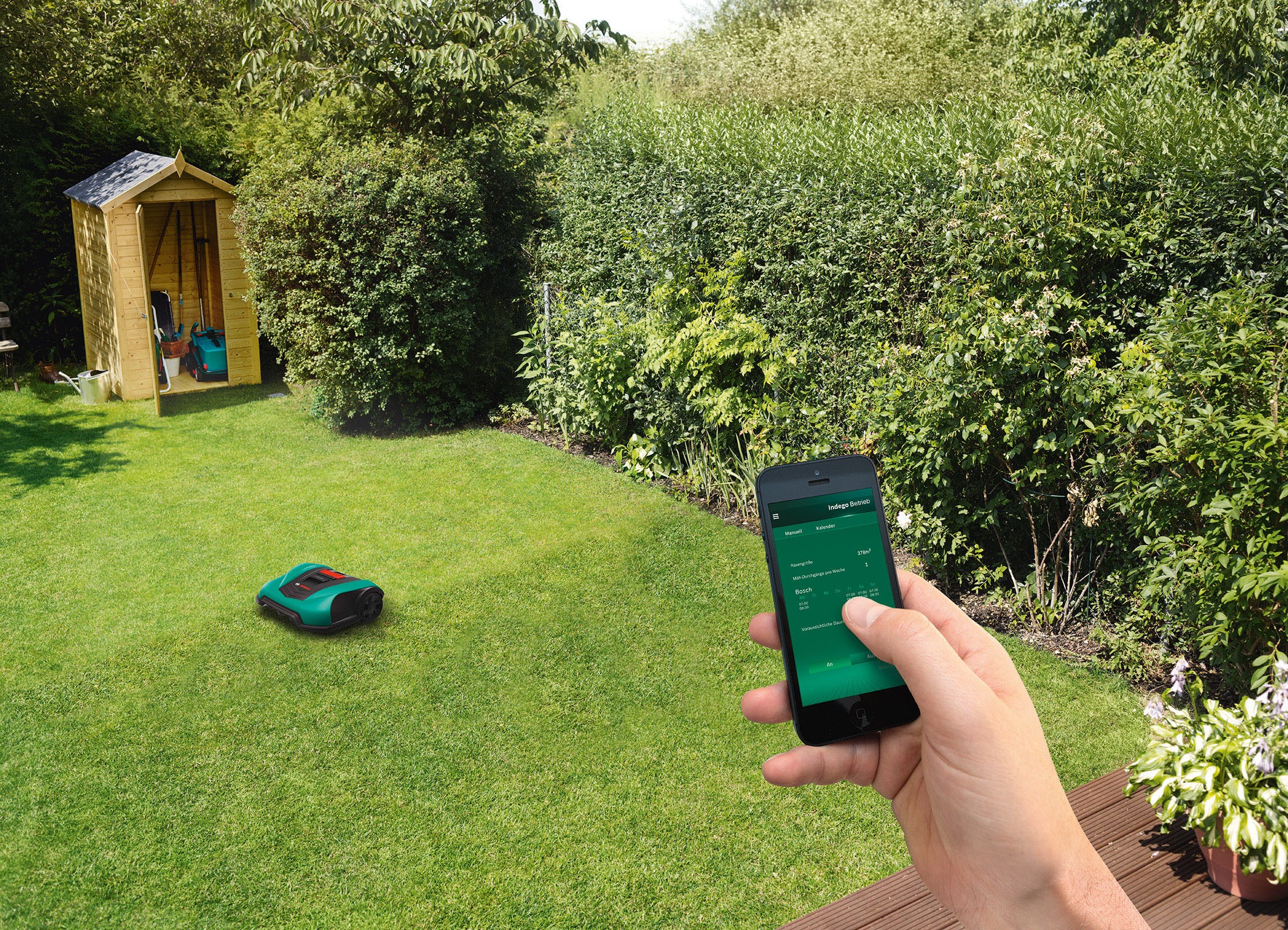 The Indego 400 and the Indego 400 Connect use the proven “LogiCut” navigation system for systematic mowing in lanes. The result: A cutting rate that is 50 percent faster than comparable robotic mowers that operate on the basis of a random navigation system. Besides this, the Indego 400 Connect can easily be controlled from wherever you are using the “Bosch Smart Gardening” app.