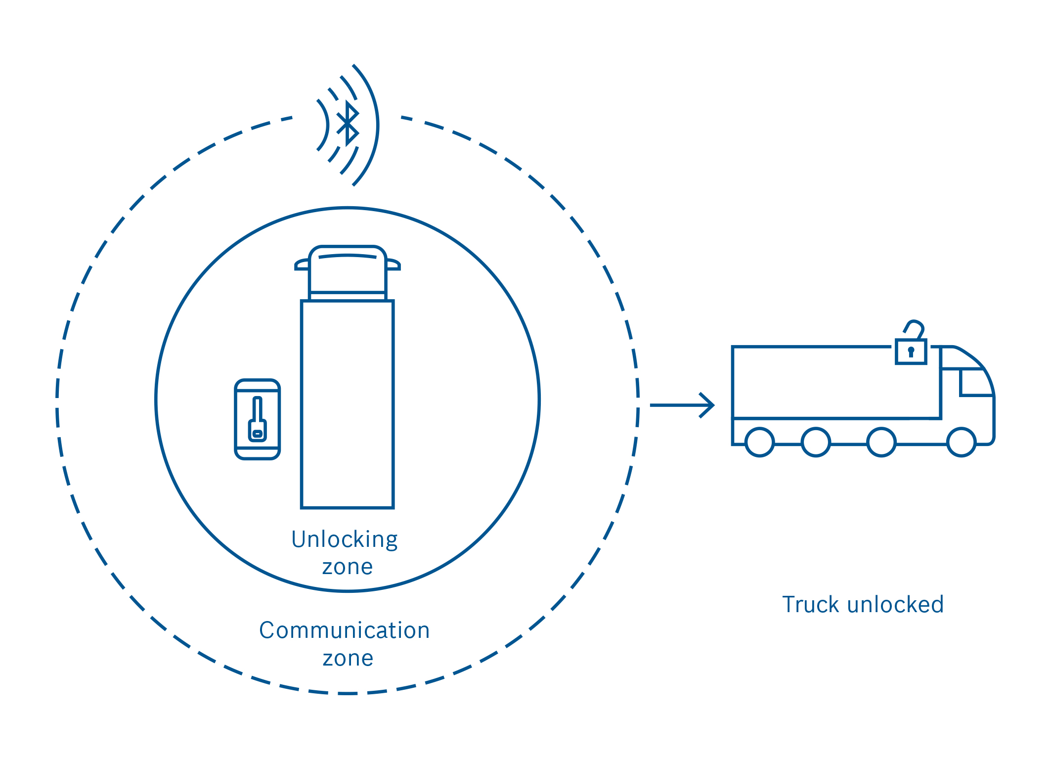 As the driver approaches the assigned truck, the sensors installed in the truck detect the smartphone via a wireless connection. The vehicle doors will open only if the key on the phone “fits” the digital lock in the vehicle.