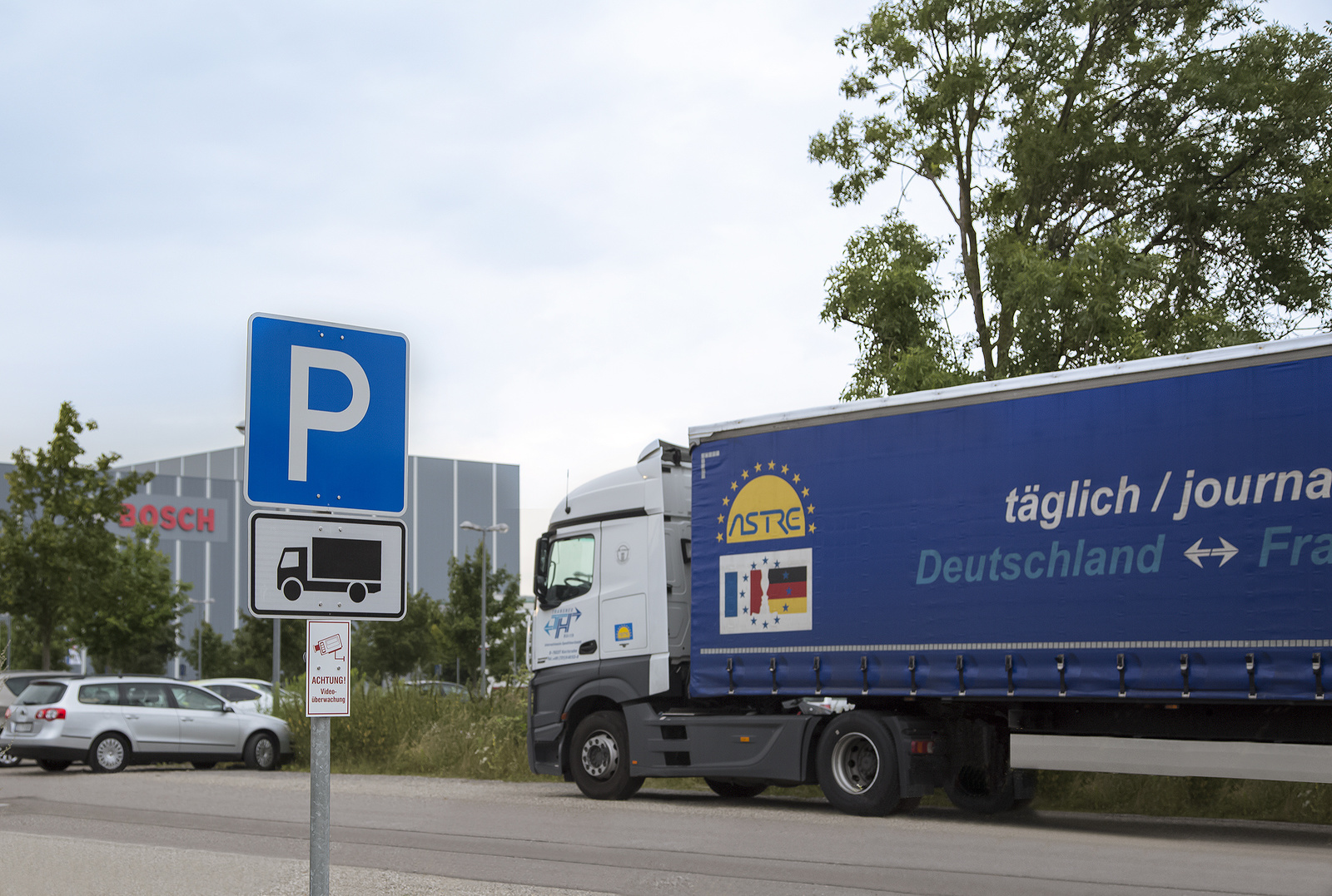 Secure Truck Parking at the Bosch site in Karlsruhe at the A5 freeway: Parking areas for trucks also at company premises