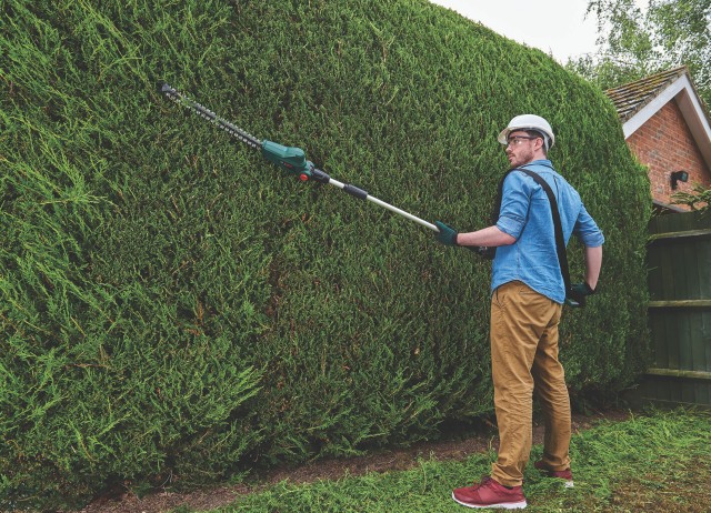 Tagliare le siepi alte e potare i rami difficili da raggiungere senza sforzo e senza scala oggi è possibile con gli utensili per il giardinaggio a 18 Volt di Bosch. Con il tagliasiepi UniversalHedgePole 18 e il potatore UniversalChainPole 18, si può lavorare con efficacia e comfort ad altezze di 3-4 metri grazie all'asta telescopica regolabile con testina fulcrata. La tecnologia che utilizza la batteria agli ioni di litio a 18 Volt garantisce prestazioni di taglio continue. Per entrambi gli utensili, il buon bilanciamento e il peso contenuto di 3,6 chilogrammi, batteria inclusa, garantiscono un'estrema facilità d'uso prendendosi cura di braccia e schiena, anche in caso di utilizzo prolungato degli utensili. La maniglia dal design ergonomico e la presa morbida inoltre, unite a una maniglia secondaria, consentono un uso confortevole.