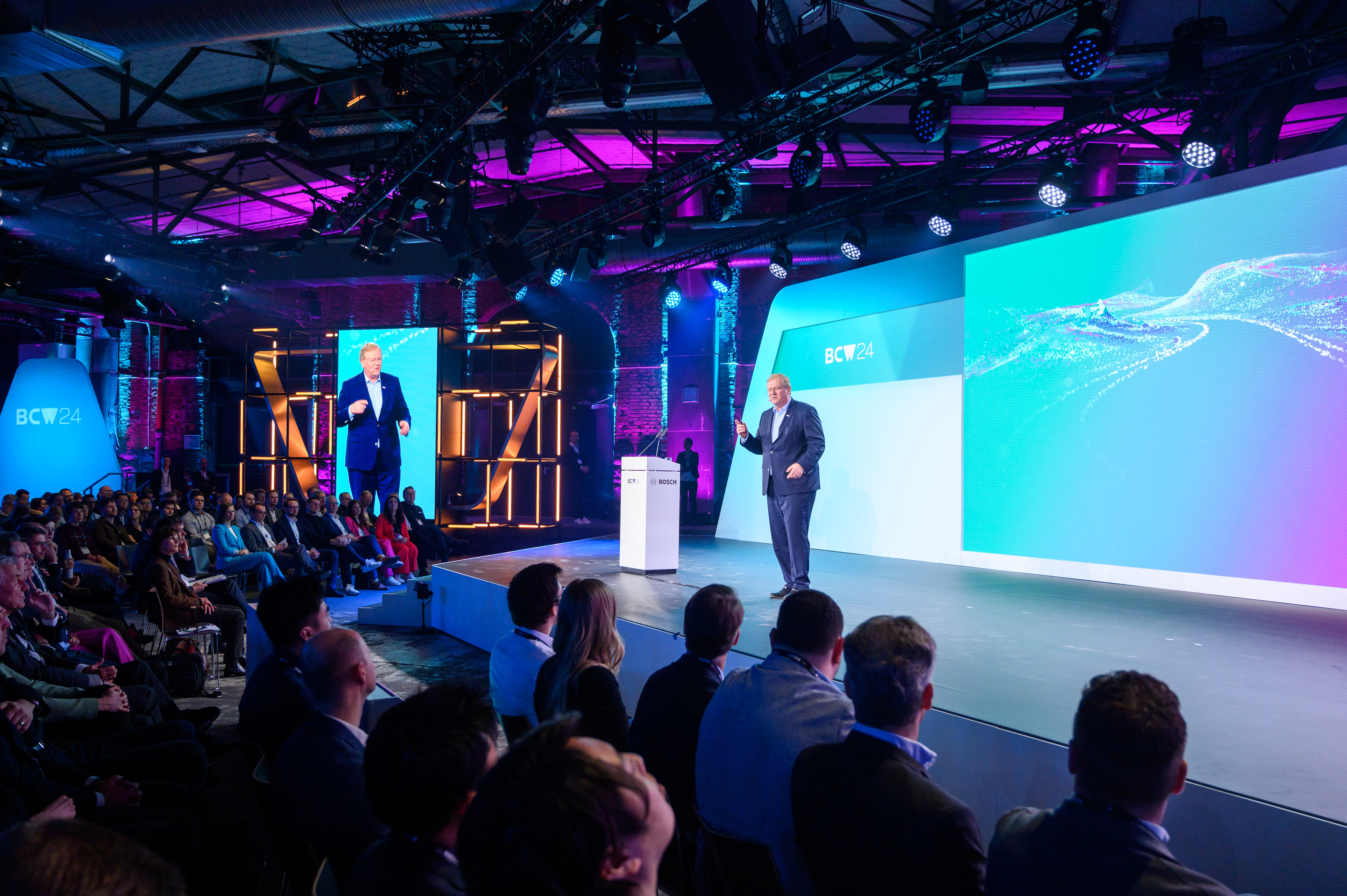 Stefan Hartung, chairman of the Bosch board of management, gives the opening keynote at Bosch Connected World 2024 in Berlin.