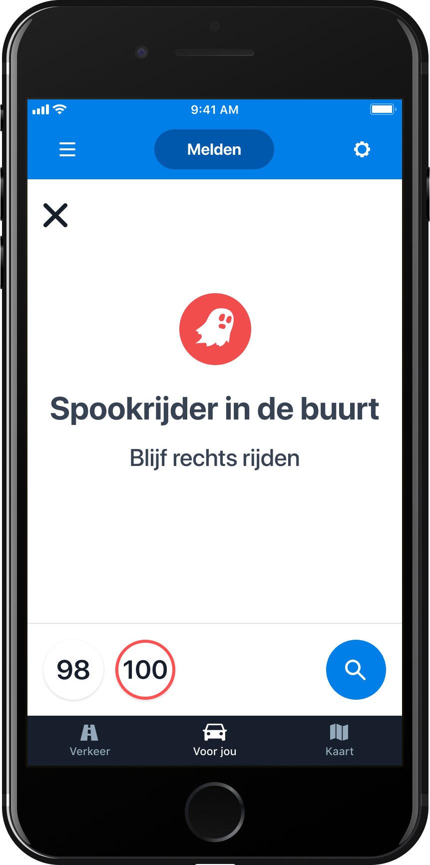 De verkeersapp Flitsmeister waarschuwt gebruikers voor spookrijders