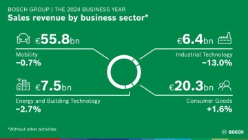 Alle bedrijfssectoren voelden de gevolgen van de zwakke ontwikkelingen op hun kernmarkten. In het licht van de wereldwijde daling van de voertuigproductie bedroeg de omzet in de bedrijfssector Mobility 55,8 miljard euro. Dat is 0,7 procent lager dan vorig jaar, maar na verrekening van de wisselkoerseffecten steeg de omzet met 0,2 procent. De EBIT-marge uit bedrijfsactiviteiten bedroeg 3,8 procent (2023: 4,4 procent). De bedrijfssector Industrial Technology boekte een omzet van 6,4 miljard euro. Dat is een daling met 13 procent tegenover vorig jaar, of 12,5 procent na verrekening van de wisselkoerseffecten. Een belangrijke factor in deze ontwikkeling was de scherper dan verwachte terugval in de bouw- en machinesectoren op de belangrijkste markten van Europa, Noord-Amerika en China. De EBIT-marge bedroeg 1,2 procent (2023: 9,1 procent). De omzet in de bedrijfssector Consumer Goods groeide met 1,6 procent naar 20,3 miljard euro, wat overeenkomt met een groei van 2,9 procent na verrekening van de wisselkoerseffecten. De EBIT-marge bedroeg 3,5 procent (2023: 4,5 procent). In de bedrijfssector Energy and Buiding Technology daalde de omzet met 2,7 procent jaar-op-jaar naar 7,5 miljard euro. Na verrekening van de wisselkoerseffecten komt dit overeen met een daling met 2,6 procent. De belangrijkste reden was de zwakte van de Europese verwarmingssector. De EBIT-marge bedroeg 4,9 procent (2023: 9,0 procent).