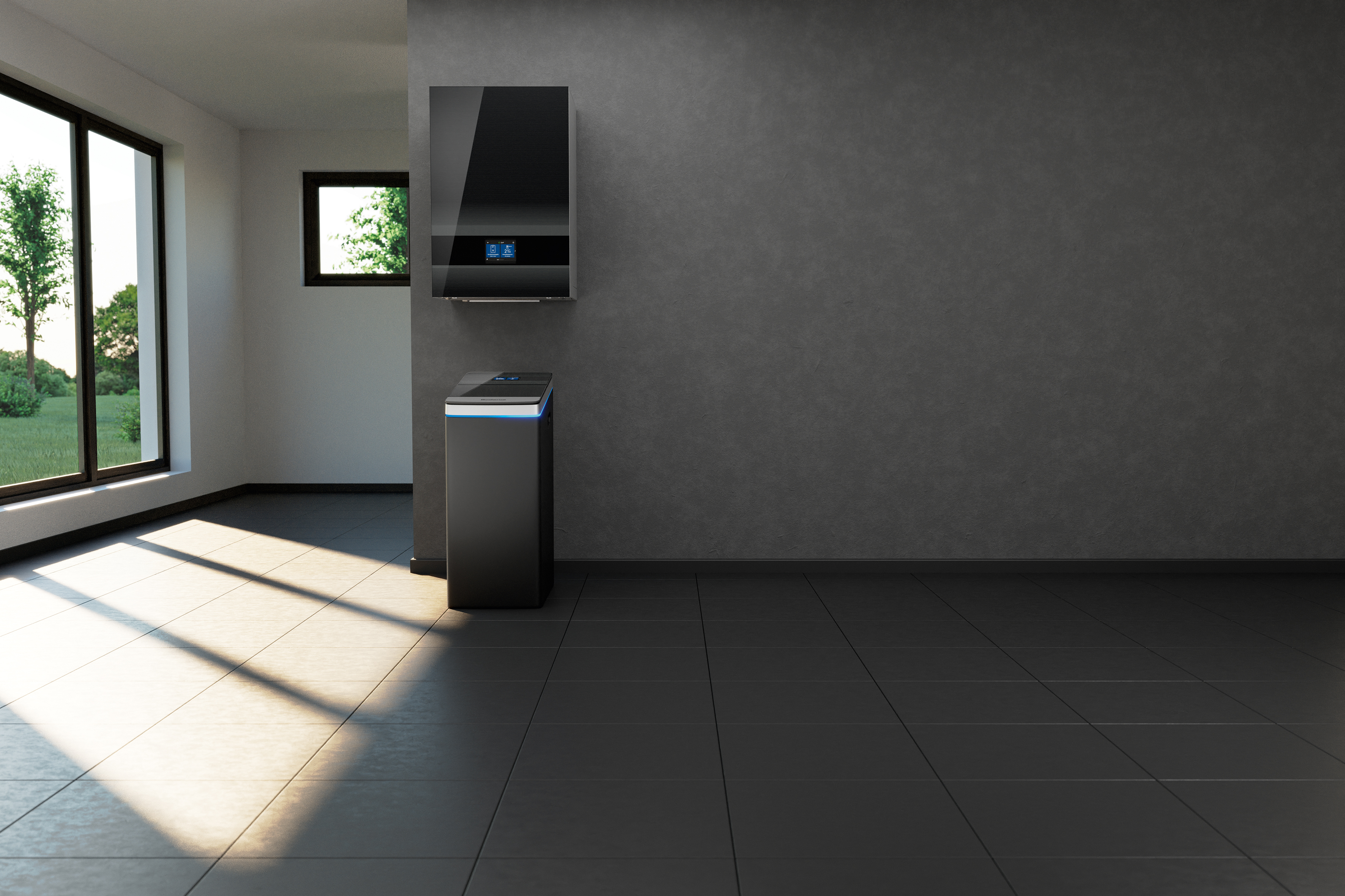 Zmiękczacz wody doskonale sprawdzi się w każdym pomieszczeniu. Wysokiej jakości czarna obudowa, szklana pokrywa, kolorowy wyświetlacz dotykowy i pierścień świetlny LED sprawiają, że Logawater soft WE800i naprawdę przyciąga wzrok.