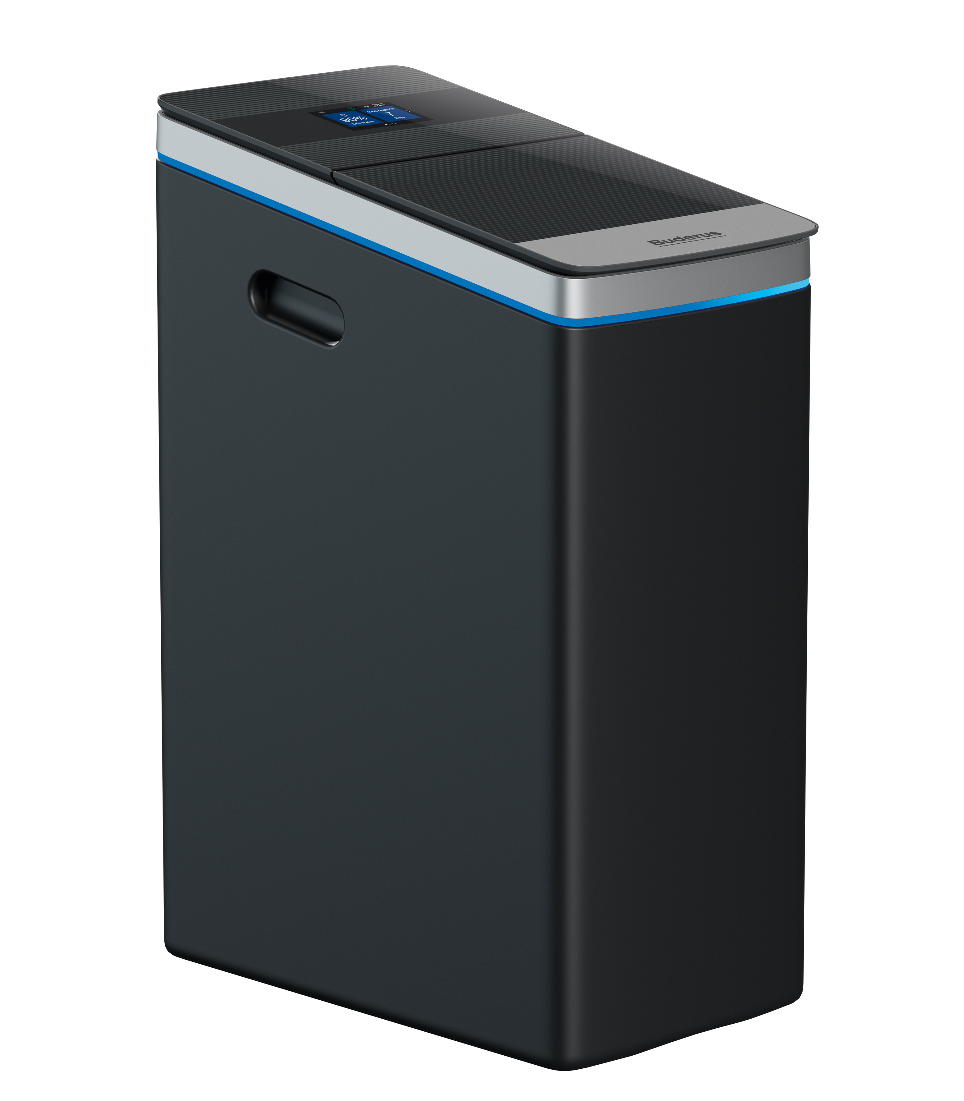 Kompaktowe zmiękczacze wody Logawater Soft wyposażone są w zaawansowany system sterowania, który dba o to, aby urządzenie było zawsze gotowe do pracy. Sterowanie systemem zmiękczania wody pitnej odbywa się za pomocą kolorowego, dla modeli WE800i również dotykowego, wyświetlacza. Dodatkowo istnieje możliwość połączenia z aplikacją do zdalnego sterowania MyBuderus (model WE400 powinien być dodatkowo wyposażony w moduł do komunikacji zdalnej). Po połączeniu z aplikacją dostępnych jest wiele opcji, m.in. wyświetlenie ewentualnych usterek lub informowanie o czasie kolejnego uzupełnienia soli. Nowoczesny panel sterowania wyposażony jest w przyjazny interface. Jego obsługa jest łatwa i intuicyjna.